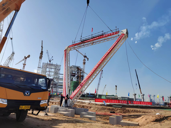 工业设备工程分公司陕西榆能集团榆神榆横2×350MW热电联产工程钢结构间冷塔首吊成功