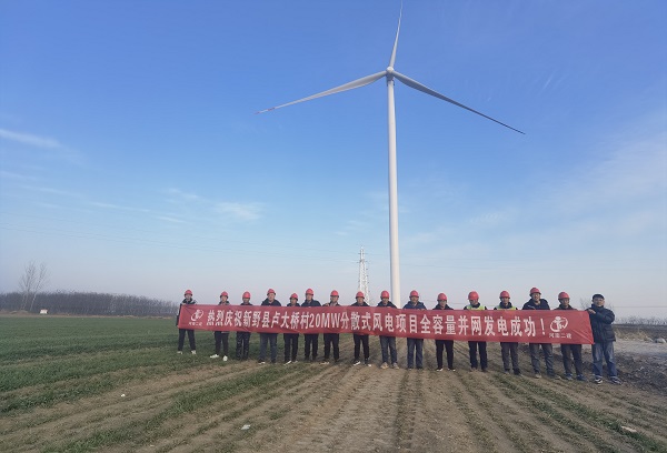 安装、市政分公司新野县卢大桥村20MW分散式风电项目顺利实现全容量并网